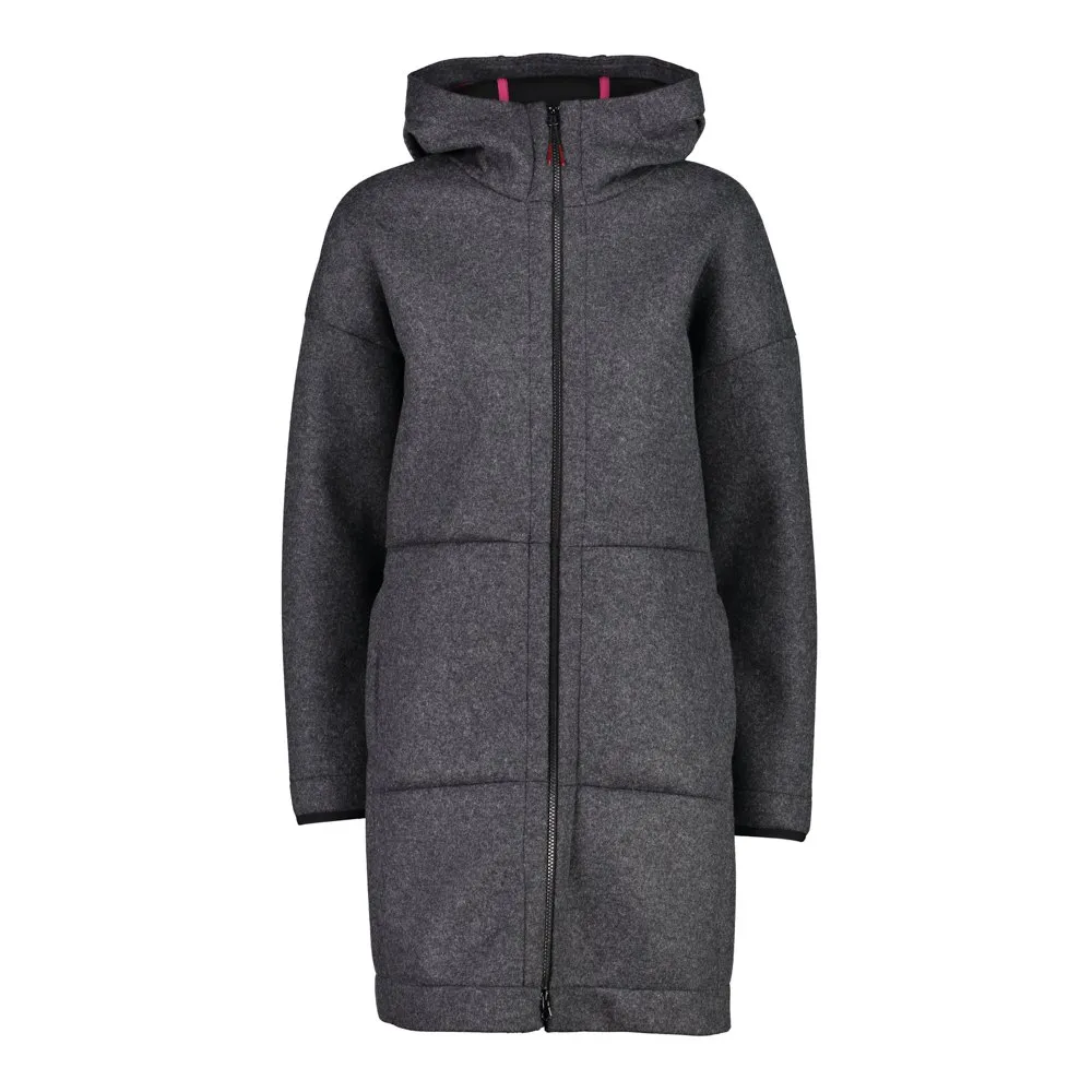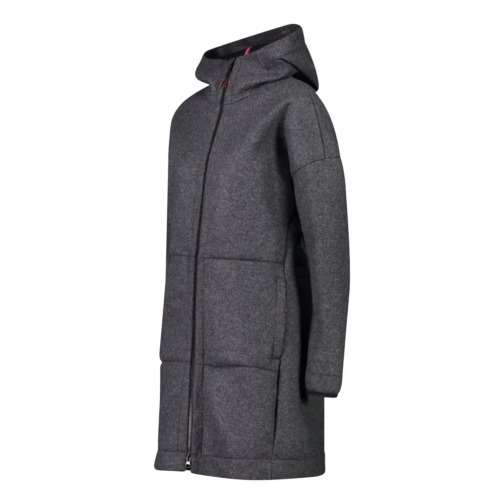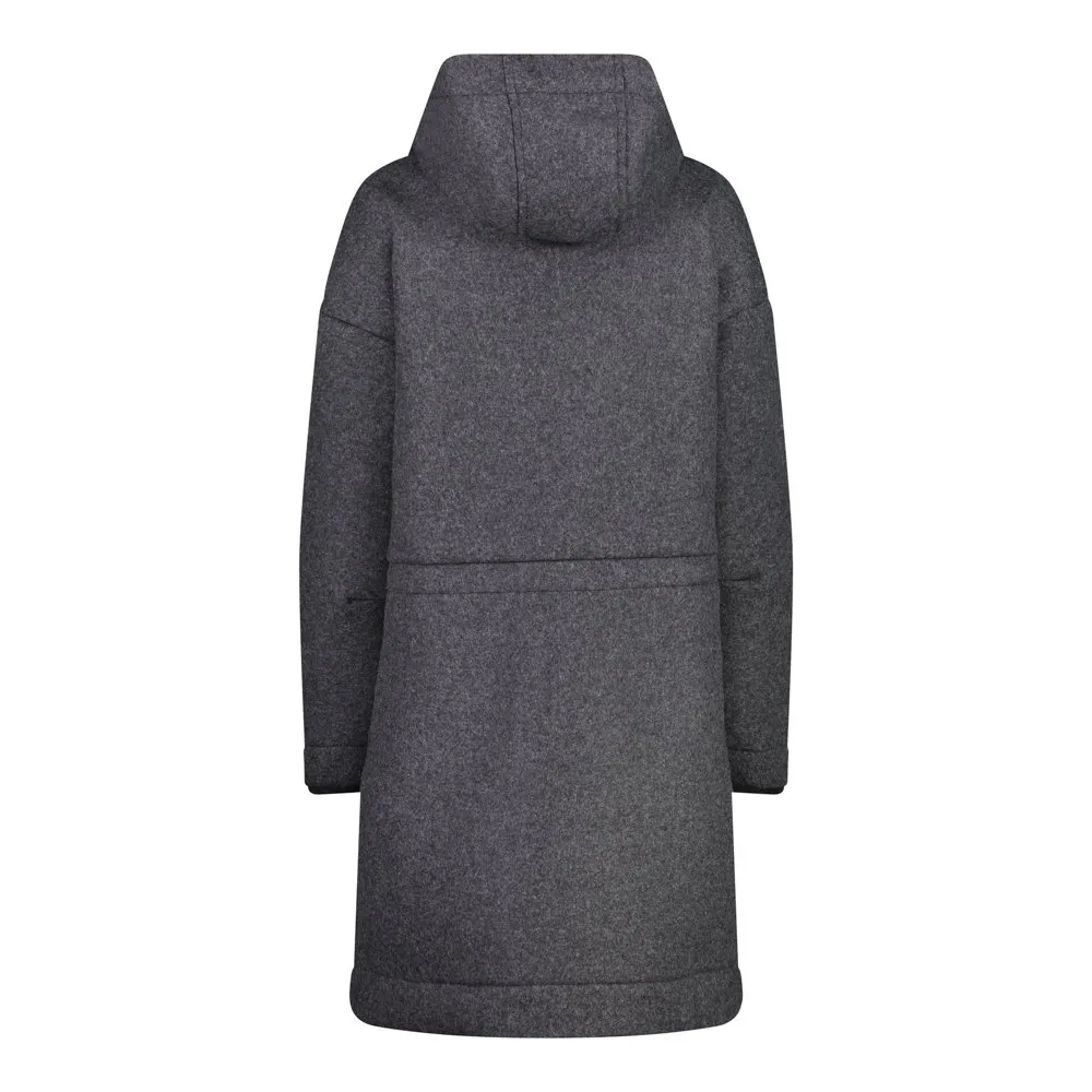 Women´s parka in Wooltech, a fabric with a wool-like appearance but with all the technical performance of the synthetic fibres used, making the garment insulating and breathable.